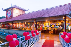 Đơn vị thành viên đầu tiên của Đầm Sen là Nhà hàng Thủy tạ nằm ở cổng số 2 của CVVH Đầm Sen. Địa chỉ số 3 Hòa Bình, Quận 11, TP.HCM.