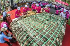 Sau khi Quốc Hội quyết định công nhận ngày quốc tổ vào tháng 4/2007, Phuthotourist đã phối hợp với UBMT Tổ Quốc Quận 11, tổ chức nhiều hoạt động lớn hơn. Tuy nhiên, Đầm Sen vẫn mong muốn làm được cống vật gì xứng đáng. Và phải mang ý nghĩa góp công sức của tập thể. Vậy là ý tưởng về chiếc bánh chưng khổng lồ ra đời từ những năm đầu 2010. Và đến năm 2016, Đầm Sen đã xác lập kỷ lục Guinness Thế giới với chiếc bánh chưng khổng lồ nặng nhất: 2,5 Tấn. Để làm chiếc bánh chưng này, đã có hơn 50 người với nhiều công đoạn gói, nấu bánh khác thường. Sau đó luộc suốt 3 ngày liên tục để dâng cúng Quốc tổ.