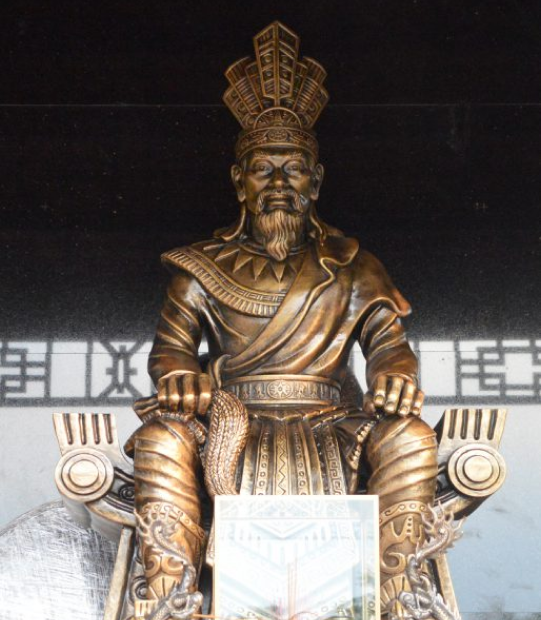 Bức tượng vua Hùng tại Đầm Sen đã được Thạc sĩ – Điêu khắc gia Phạm Văn Út thực hiện. Tác giả đã xây dựng bố cục vua Hùng ngồi trên ngai, cách điệu từ hoa văn trống đồng. Mặt tượng nhìn thẳng thể hiện sự tôn nghiêm. Tay phải nắm chùm bông lúa, ý muốn đề cao một nền văn hóa lúa nước của dân tộc Việt, cho con cháu đời sau phải gìn giữ và tôn vinh. Tay trái để tự nhiên trong tư thế ngồi trao đổi với các Lạc tướng, Lạc hầu. Các hoa văn trang trí trên bộ trang phục, được lấy cảm hứng từ đường nét của nền văn hóa Đông Sơn. Đặc biệt là hoa văn trên trống đồng Ngọc Lũ.