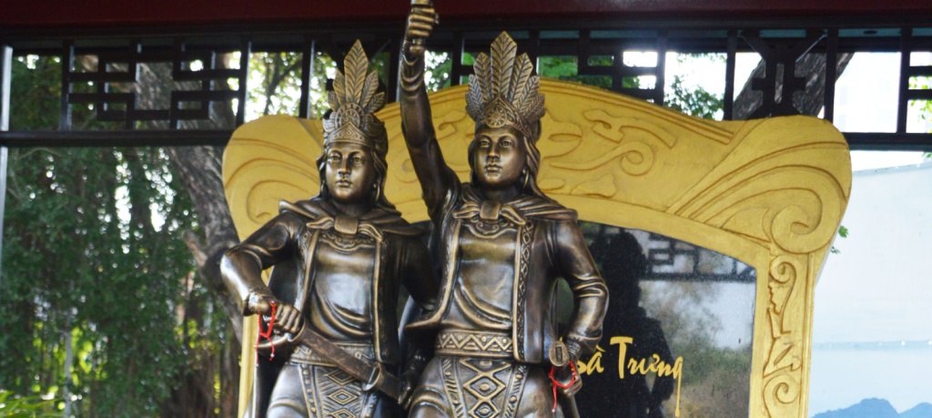 Danh tướng thứ hai là Hai Bà Trưng (xem thông tin lịch sử tại đây). Hai nữ anh hùng dân tộc đầu tiên của đất Việt, phất cờ khởi nghĩa. Và lập quốc gia với kinh đô tại Mê Linh. Bà Trưng Trắc lên ngôi Nữ vương, trở thành vị vua nữ đầu tiên trong trong lịch sử Việt Nam. Với danh hiệu Trưng Nữ Vương. Cả hai biểu tượng danh tướng đều được đặt hai bên chánh điện, trong khuôn viên của quảng trường vua Hùng. (xem thêm về lễ khánh thành tượng Hai Bà Trưng tại đây)
